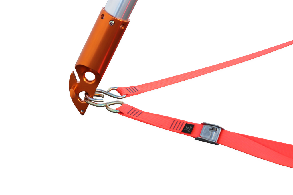 The Arizona Vortex Hobble Straps are the fast and easy way to securely hobble Vortex legs. Our straps are manufactured using high-visibility orange 1-inch flat web fed through a quick-adjusting cam buckle. Two steel S-hooks offer simple connection through Vortex Raptor Foot holes or around the Flat Foot joint. An integral adjustable keeper strap is provided to mind excess web tail and packs neatly when stored. Strap adjusts in length up to 6 m (20 ft) for leg-to-leg spans that may require running hobbles over objects such as beams, curbs, stumps, rocks or uneven ground.