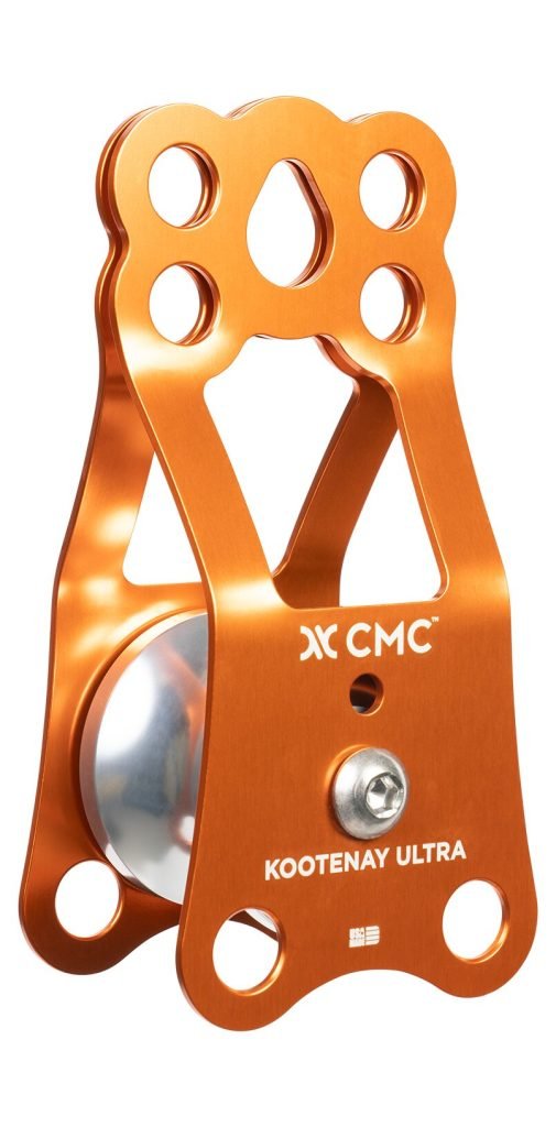 Our Kootenay Ultra Pulley is the most functional, versatile knot-passing and high-strength tie-off pulley available. For high lines, the rigging holes allow for optimum separation of tag lines and hoist ropes for reeving variations. For English and Norwegian reeves, a greater spread between the hoist pulleys significantly reduces the chance of inadvertent spinning of the load. Separate rigging holes make rigging easier and also prevent carabiners from binding against each other. For high-strength tie-offs, the integrated sheave-lock pin inserts easily into the sheave-lock hole from its stowed axle position. The strong, durable anodized aluminum sheave is fitted with sealed ball bearings for long wear and high efficiency.