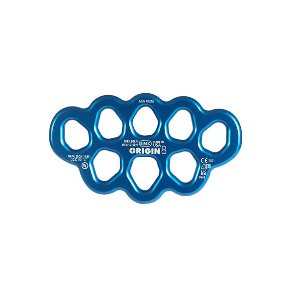 Origin 8 large rigging plate, boasts the perfect quantity of connection points to ensure orderly rigging and serves as an excellent choice as a master point for litter bridles. Its generous connection apertures enable seamless rotation of most locking carabiners. This robust plate exhibits an impressive Minimum Breaking Strength (MBS) of 50kN in all directions and is meticulously crafted with specialized tooling to provide rounded edges that are gentle on textiles.