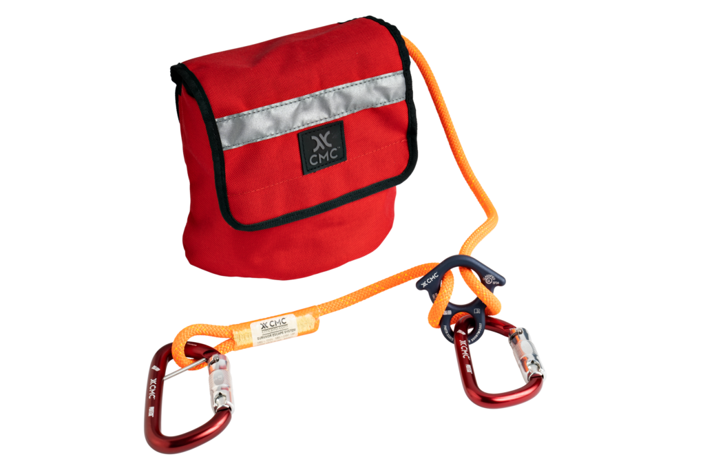 Our cost-effective Escape System does not sacrifice performance. It features the Survivor 8, 50 feet of Escape Line, a tough Cordura® nylon Escape Bag, and two ProTech™ Auto-Lock Carabiners for attaching the line. This system includes a Red ProTech Auto-Lock Carabiner on the Survivor 8 end and a Red ProTech Auto-Lock Carabiner with Keeper Pin on the rope end.